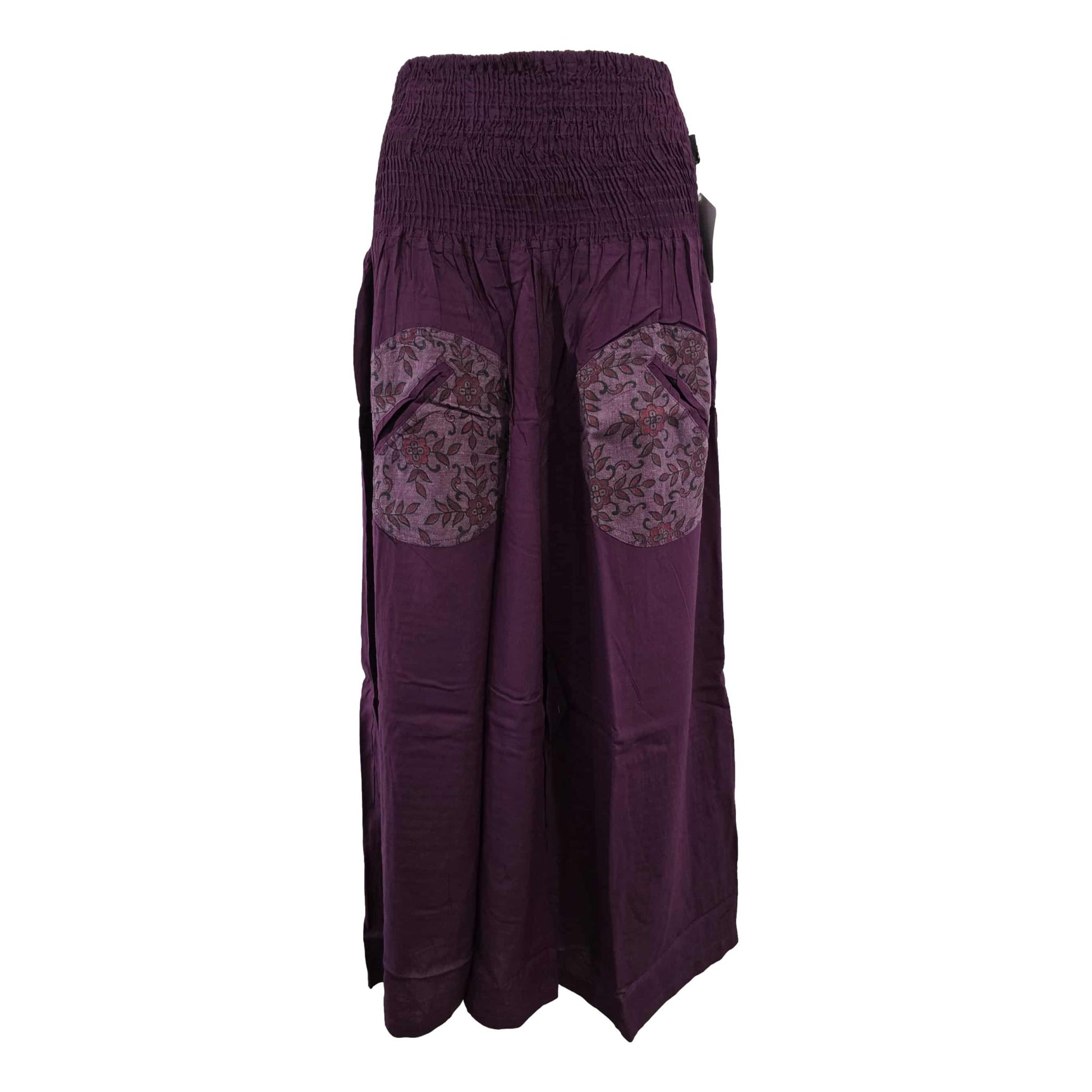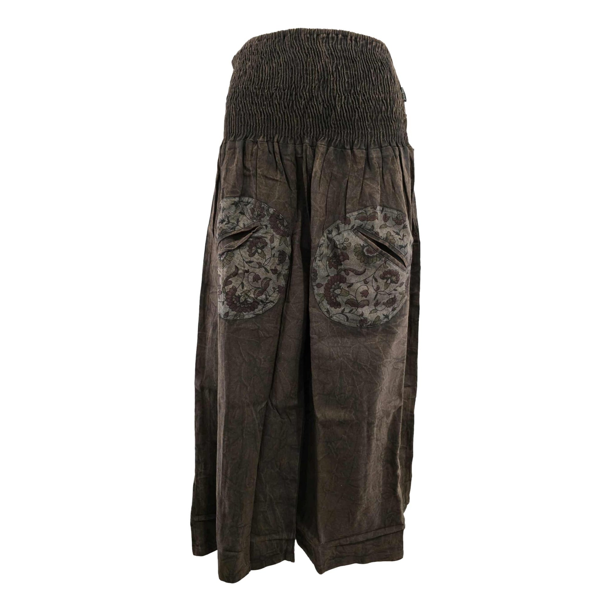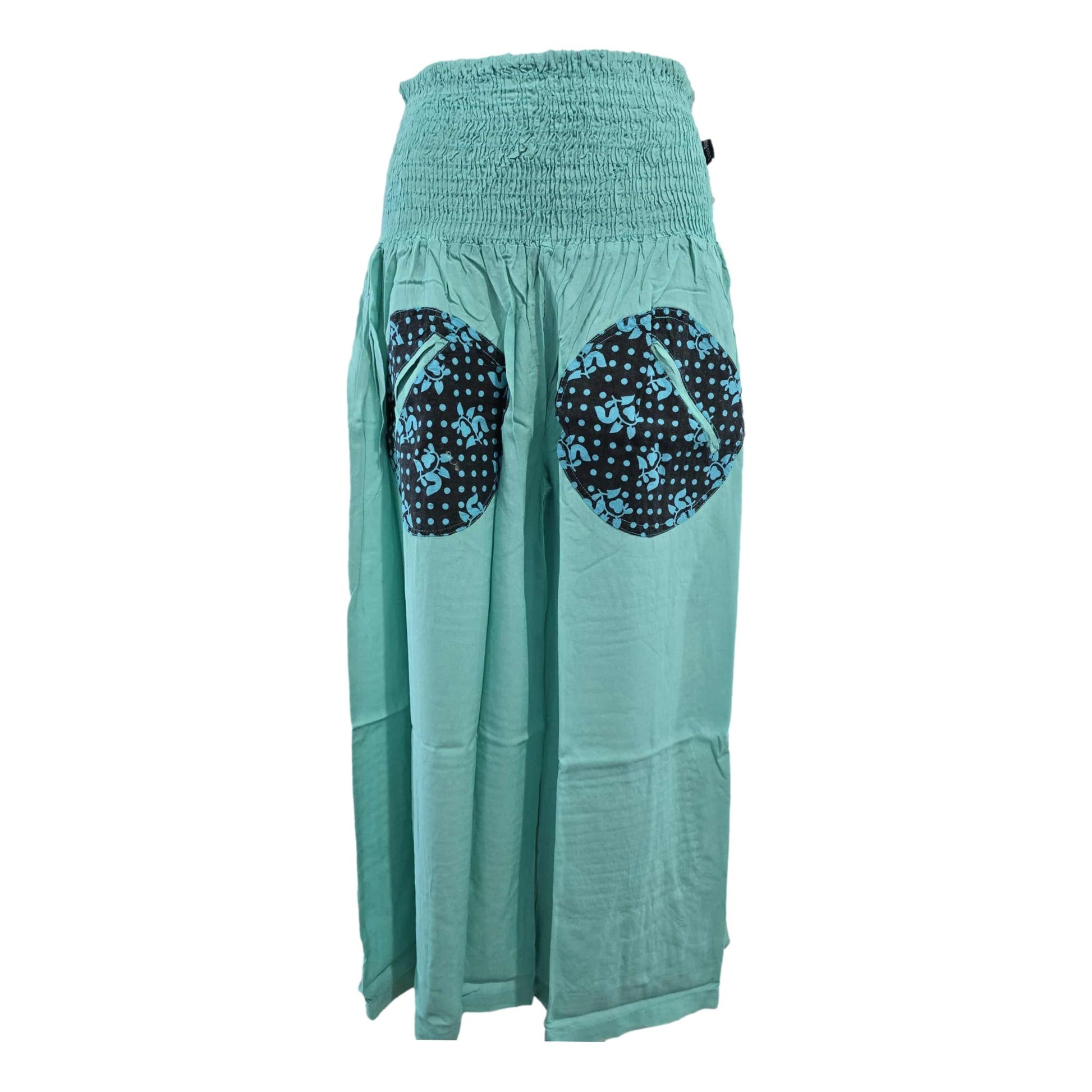 Get cozy and cute with these soft rayon & cotton Wide leg pants, complete with two playful round printed pockets. The shirred waistband adds extra comfort for a breezy, relaxed look.