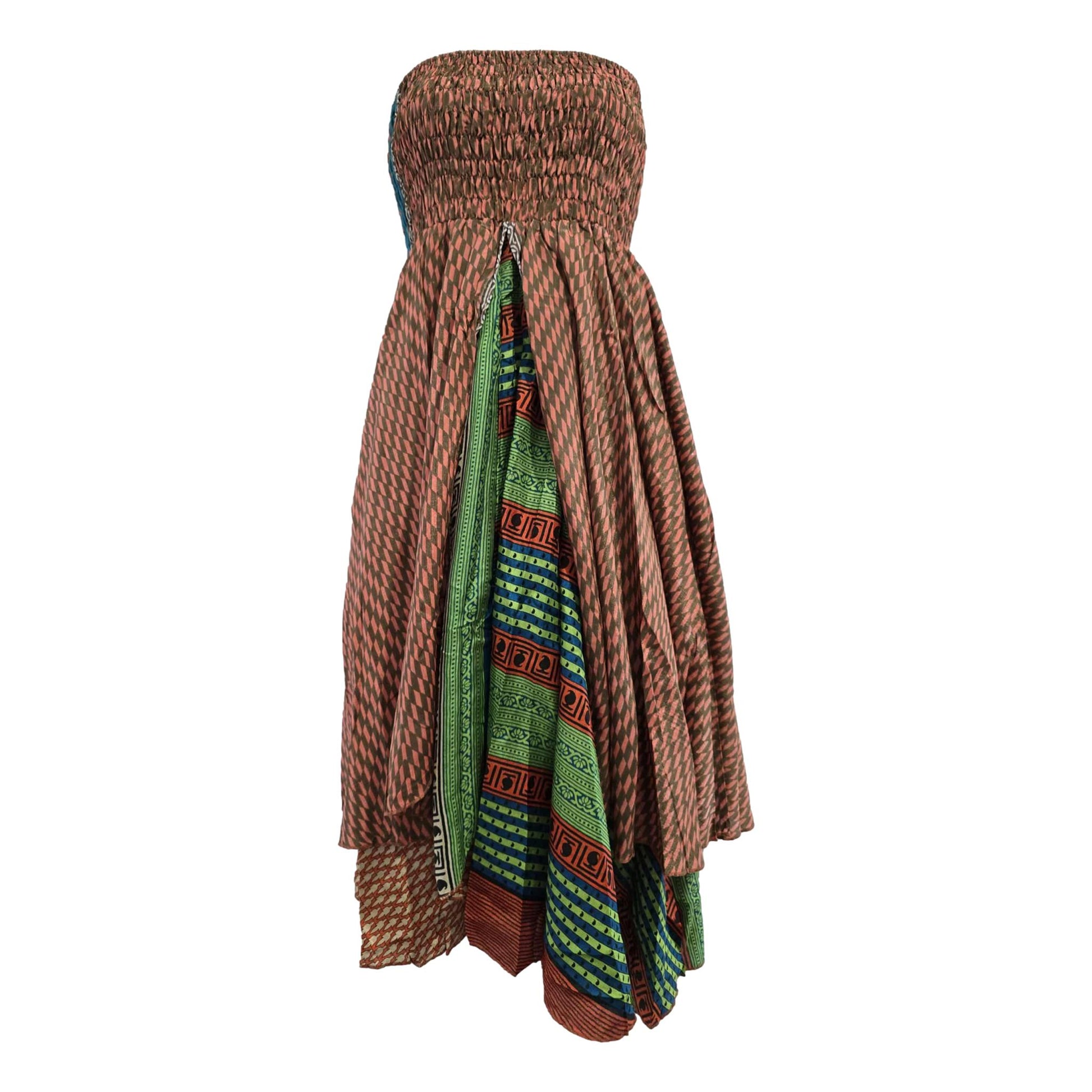Floral Two Layer Silk Style Sari Viscose Summer Strapless Dress or Skirt